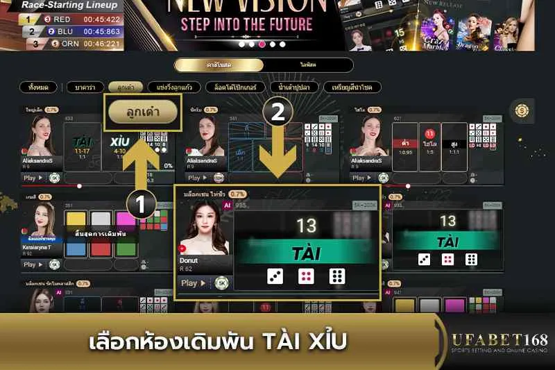 - เมื่อเข้าสู่ห้องเล่นไฮโลเวียดนาม ระบบจะแสดงโต๊ะเกมและตัวเลือกการแทง